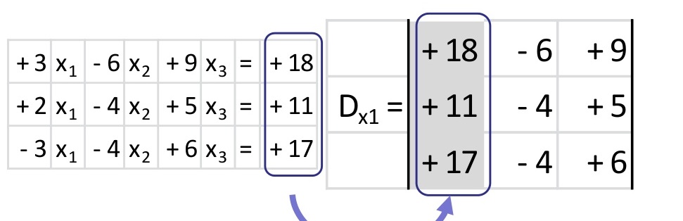 Los coeficientes de las incógnitas se convierten en el determinante principal del sistema.