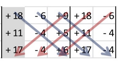 Después nuevamente se multiplica en diagonal , y se cambia el signo de los resultados.