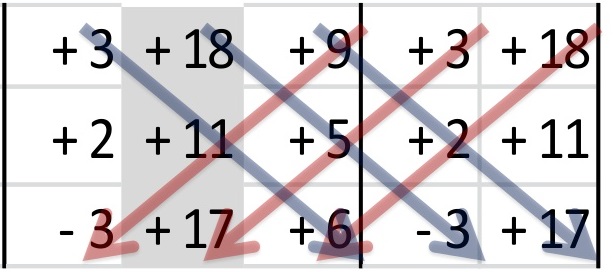 Después se multiplican las 6 diagonales (no olvides cambiar los signos en tres de ellas) y se suman los seis resultados de ellas.
