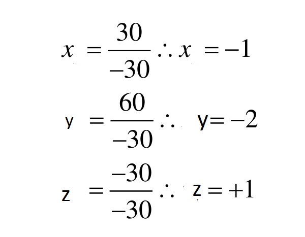 Los valores de las incógnitas se dan dividiendo los determinantes por el determinante principal.