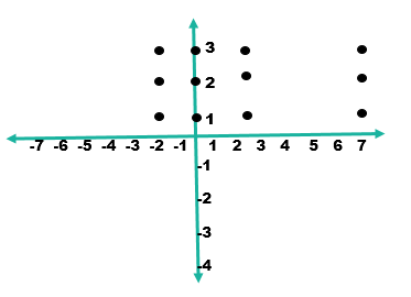 A x B = {(-2, 1), (-2, 2), (-2, 3), (0, 1), (0, 2), (0, 3), (3, 1), (3, 2), (3, 3), (7, 1), (7, 2), (7, 3)}